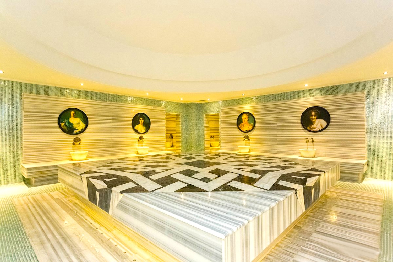 Spa & Wellness merkezimizdeki geleneksel Türk hamamı, vücudunuzu temizler, toksinlerden arındırır ve cildinizi yeniler. Isı ve nemin terapötik etkisi, kasları gevşetir, cildi yumuşatır ve genel bir rahatlama sağlar.